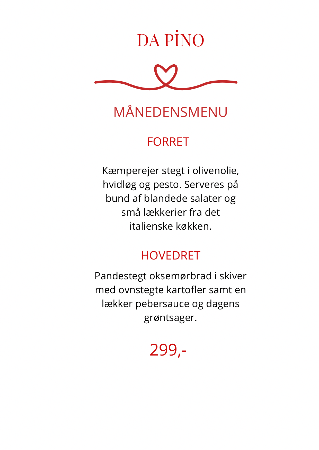 I tidsrummet 17.00-20.00 kan der forekomme ekstra ventetid på bestilling af antipasto og ostefade.